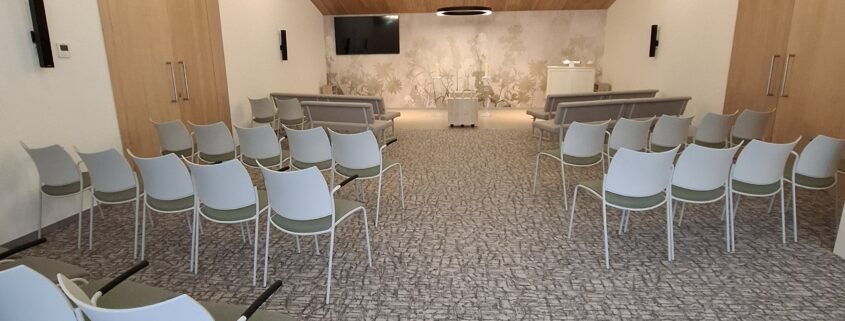 Hoewel het gebouw nog niet officieel is geopend, is het inmiddels wel al in gebruik genomen. Voorzitter van het bestuur Jacqueline Beimers en uitvaartleider Gertie Ruesink zijn, samen met het team, trots op het resultaat en op het duurzame en toekomstbestendige uitvaartcentrum dat wij hier hebben gerealiseerd.